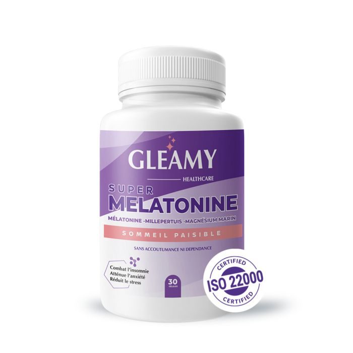 Gleamy Super Mélatonine, une formulation sophistiquée qui combine avec finesse les effets de la mélatonine pure, du magnésium marin, et du millepertuis. Ce complément alimentaire innovant est votre partenaire idéal pour un sommeil réparateur et une gestion efficace du stress quotidien. Profitez de nuits paisibles et de journées dynamiques grâce à cette solution naturelle.